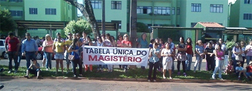 O ato foi para reforçar os pedidos da categoria, entre eles o reajuste de 12% e a tabela única do magistério.