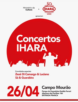 Viu esse cartaz por aí e não deu muita bola? Então, preste atenção nas “letrinhas miúdas”. É esse cartaz aí que anuncia o show com Zezé di Camargo & Luciano, neste domingo, em Campo Mourão. Antes tem Sá & Guarabyra. Tudo na faixa. Será no Parque de Exposições, com portões abertos a partir das 16h. O show é uma promoção da multinacional Ihara, via Lei de Incentivo à Cultura do governo federal. Ah, e você pensando que letrinha miúda era só bula de remédio...
