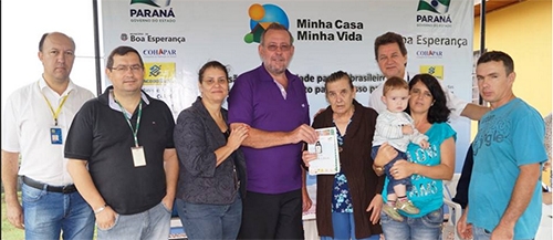 Boa Esperança – Aconteceu quarta-feira aa entrega de sete casas do Programa Nacional de Habitação Rural, numa parceria entre prefeitura, Cohapar e governo federal. O prefeito Claúdio Gotardo e o vereador Gilson Martins estiveram presentes.