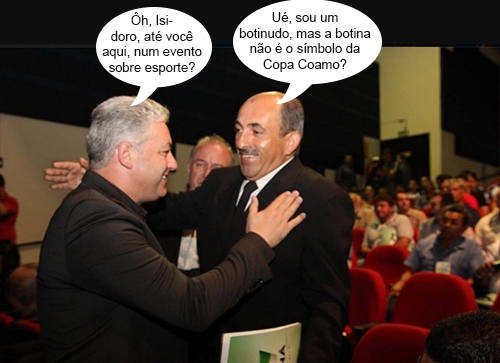 O clic é desta quinta-feira, no Teatro Municipal, onde aconteceu a abertura do Encontro Estadual de Gestores Esportivos. E olha só quem apareceu por lá, engravatado e tudo: o vereador Isidoro Moraes. Foi recebido pelo secretário de Estado Douglas Fabrício. O terno e gravata não foram à toa, não. Isidoro estava representando a vice-governadora Cida Borghetti. Ah, tá pensando o quê!...