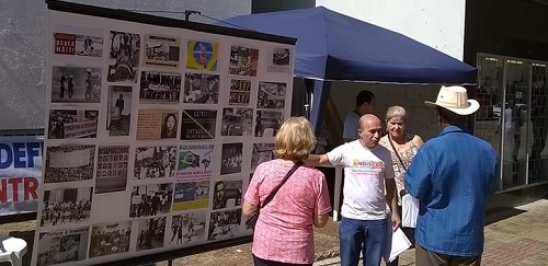 Foram distribuídos panfletos e instalado um painel com fotos e reportagens de jornais sobre os tempos da repressão.