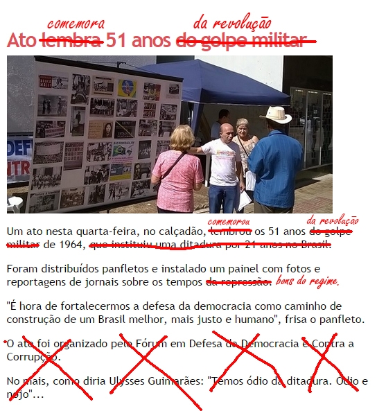 No mais, como diria Ulysses Guimarães: "Temos ódio da ditadura. Ódio e nojo"...