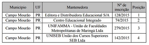 Para Campo Mourão quatro instituições estão na briga, entre elas o Inrtegrado (veja quatro acima).