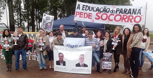 Professores em greve marcaram presença, neste domingo, no acesso à 21ª Porco Fest, que aconteceu no CTG Índio Bandeira. Levaram faixas, cartazes e o “cemiterinho”. O evento promovido pelo Rotary, com renda para a Apae, foi um sucesso, mas os deputados da região não apareceram. Nem Márcio Nunes, nem o secretário Douglas Fabrício (Esporte e Turismo). Hummmmm...