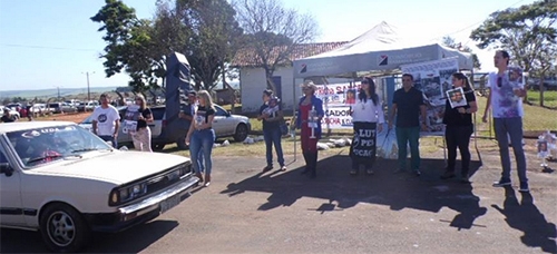 A Festa do Leitão Maturado, em Goioerê, também teve protesto de professores em greve.