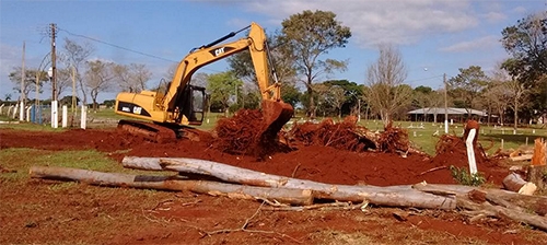 A Secretaria de Obras de Campo Mourão fez o serviço de retirada de troncos no Parque de Exposições. Tudo visando a construção do Centro de Eventos. A construtora Maes venceu a licitação e fará a primeira etapa da obra por R$ 998,8 mil. O dinheiro vem do governo federal, via emenda do deputado Rubens Bueno. A obra completa vai custar bem mais (cerca de R$ 7 milhões), mas isso já são "outras emendas"...