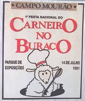 ...para o prato típico de Campo Mourão ser servido na 25ª Festa Nacional do Carneiro no Buraco . O cartaz é da primeira edição da festa, em 1991. O prefeito era Augustinho Vecchi. Vinte e cinco anos depois, o carneiro segue sendo servido em apenas um dia.