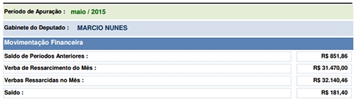 O mourãoense Márcio Nunes fechou o mês com gastos de R$ 32,1 mil.