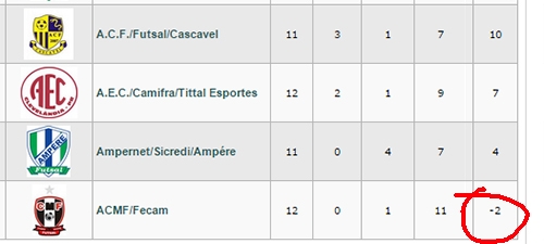 Pois é assim que Campo Mourão está aparecendo na tabela do Paranaense de Futsal.