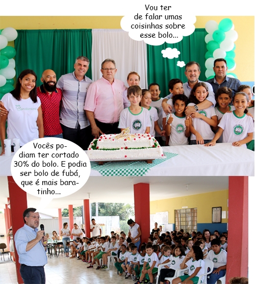 Os cliques são desta quinta-feira, quando teve comemoração pelos 15 anos da escola Constantino de Lisboa Medeiros. O prefeito Tauillo Tezelli e três vereadores participaram. Teve bolo e tudo. A escola foi criada no outro mandato de Tauillo e funcionava junto com o colégio estadual Vinícius de Moraes. No Mandato de Nelson Tureck ela ganhou prédio próprio. A primeira diretora foi Tânia Caetano, hoje secretária de Educação.