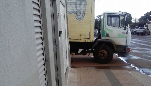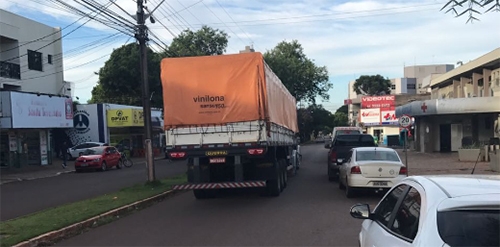 “Carreta "a mil por hora" passa em frente à Central Hospitalar, na av Manoel Mendes de Camargo, centro de Campo Mourão”.