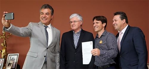 O governador Beto Richa aprovou nesta segunda-feira um pedido de financiamento de R$ 1 milhão para Engenheiro Beltrão. O dinheiro será para obras urbanas e compra de equipamentos. O prefeito Rogério Rigueti e o deputado Márcio Nunes estiveram com Richa e o chefe da Casa Civil, Valdir Rossoni. “Graças à boa relação com o governador foi possível liberar esses recursos”, frisou o deputado. E ainda ganharam uma selfie...