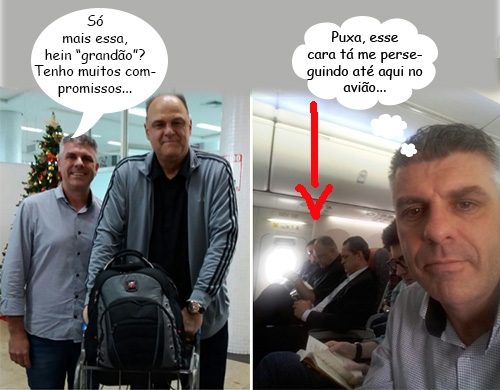 Olha só quem fez companhia no avião ao vereador mourãoense Edilson Martins. Ele mesmo: Oscar Schimdt, o maior jogador de basquete que o Brasil já teve. Edilson, é claro, não deixou de fazer uma tietagem básica. Ou será que foi Oscar quem pediu a foto ao lado do vereador reeleito?...
