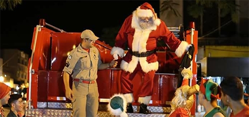 Que trenó, que nada! O Papai Noel chegou a Campo Mourão nesta sexta-feira em caminhão do Corpo de Bombeiros. Como sempre, um bom público foi à praça São José, que “inaugurou” a iluminação de fim de ano. A prefeita Regina Dubay não apareceu. Foi representada pelo secretário da Fazenda, Altair Casarim. De vereador, só Sidnei Jardim fez parte do palco das autoridades ao lado do “bom velhinho”.