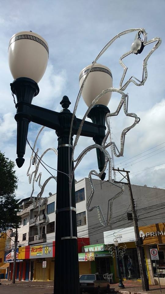 Na rua São Paulo, iluminação de Natal foi instalada diretamente nos postes republicanos. A prefeitura diz que não foi ela quem fez a instalação.