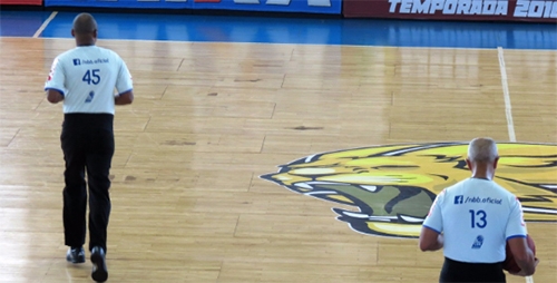 Com Campo Mourão virando “pólo de basquete”, todo mundo vai aprendendo um pouco mais sobre a modalidade. A gente descobriu, por exemplo, que na “bola ao cesto” até os árbitros têm número nas camisas. E olha só o que a liga fez nessa partida disputada no Ginasião! No mesmo jogo tem árbitro com o 45 do PSDB e com o 13 do PT...