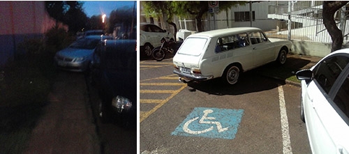 Veículo estaciona sobre a calçada na entrada da piscina do estádio, na quarta-feira à noite. Já nesta quinta, carro para sobre calçada na rua Guarapuava.