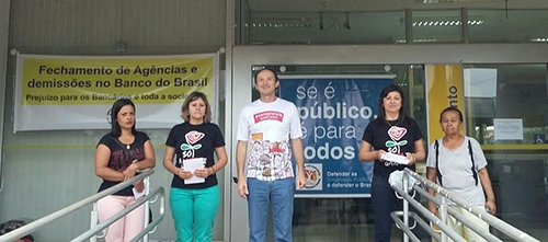 Protesto do Sindicato dos Bancários em todo o País fechou nesta terça-feira agências do Banco do Brasil. A ação é contra o anúncio de fechamento de agências em todo o País. Na região o protesto foi em Janiópolis, já que a agência local foi incluída na lista das mais de 300 que serão rebaixadas para posto de atendimento. Na sexta-feira (9h) lideranças do município farão uma manifestação em frente ao banco.