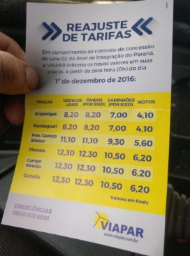 Isso tanto na praça de pedágio da PR-317 (Campo Mourão – Maringà) como na BR-369 (Campo Mourão – Mamborê).