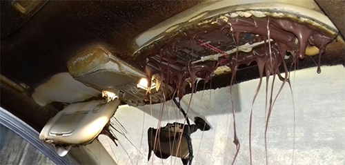Os homens também tentaram incendiar o carro, mas o fogo no interior do veículo não se alastrou (foto).
