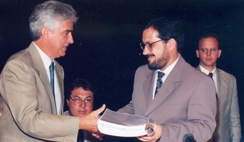 Foto: Tauillo assume a prefeitura pela primeira vez, em 1 de ajnerio de 1997, e recebe prestação de contas de Rubens Bueno, de quem tinha vice.