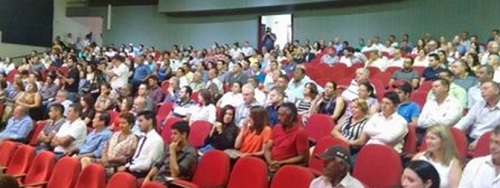 A posse dos eleitos em Campo Mourão começou neste domingo com 20 minutos de atraso. Estava marcada para às 9h e foi iniciada às 9h20 com a chamada dos vereadores eleitos. Um a um foi chamdo com a leitura de currículo, o que demorou 14 minutos. O Teatro Municipal recebeu bom público, mas não chegou a lotar. Elvira Schen, como vereadora mais votada, presidiu a sessão prepatória.