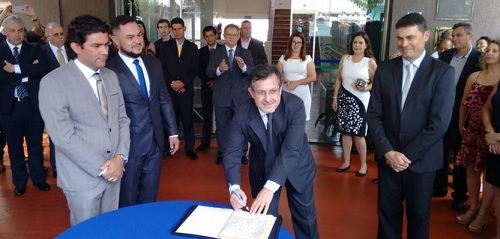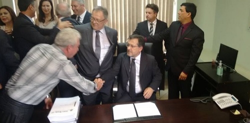 O prefeito Tauillo Tezelli foi recebido no Paço Municipal por Márcio Berbet (procurador geral) e Cezar Ferreira (coodenador geral).