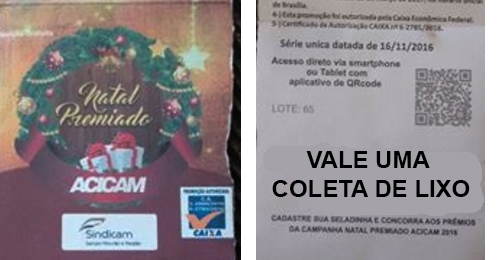 Depois de dois dias suspensa, a coleta de lixo foi retomada em Campo Mourão nesta quarta-feira. Ufa! Foi tempo suficiente para muita gente valorizar o trabalho dos coletores. Imagine a cidade (e a gente) sem eles, o caos que seria. Também teve aqueles que não perderam o bom humor e até “acharam” seladinhas do Natal Premiado valendo coleta de lixo. Neste caso, não seria seladinha e sim “coletinha”...