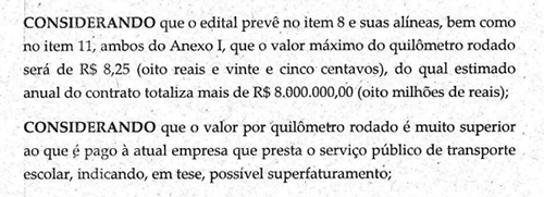 O Ministério Público emitiu recomendação para que a prefeitura suspenda a licitação do transporte escolar.