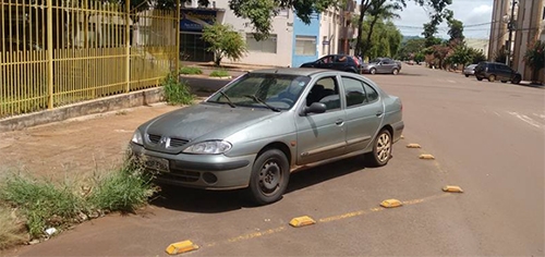 Na rua Mato Grosso, carro estaciona muito próximo à esquina com a av. Goioerê, em local devidamente demarcado como no permitido para isso.