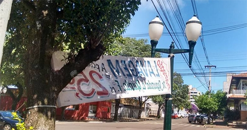 A ação incluiu faixas amarradas em postes e árvores.