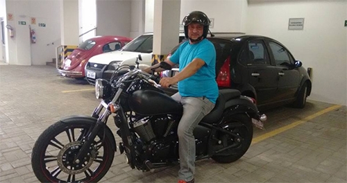 Olha só como o vereador Sidney Ribeiro, o “Tucano”, tem comparecido na Câmara de Campo Mourão. Isso mesmo: pilotando uma potente motocona de 900 cilindradas. Ele disse que já tem a moto há três anos. E dê-lhe vrummmmmmmmm...