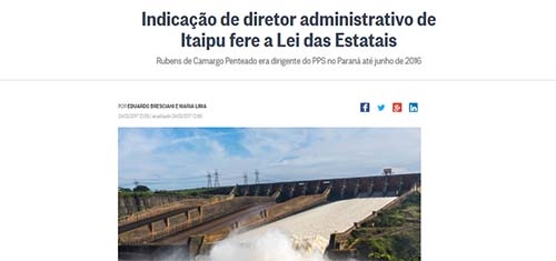 O jornal O Globo publicou nesta terça-feira que diretores indicados para Itaipu estão em desacordo com a lei.
