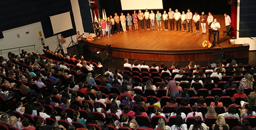 A prefeitura de Campo Mourão economizou até na hora de definir os palestrantes para a abertura do ano letivo. Nada de trazer gente de fora, não. Os professores que lotaram o Teatro Municipal ouviram palestras do presidente da Tecnocampo, Eduardo Akira Azuma, e do secretário municipal Carlos Alberto Facco (Desenvolvimento Municipal). Akira falou de sua experiência com gerente da Fundação Educere. Facco fez uma palestra motivacional – “Você é o que pensa que é”.