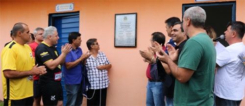 A “inauguração” teve jogo amistoso de veteranos e descerramento de placa.