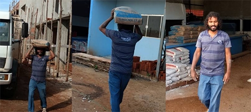 Conhece o “saqueiro”? Repare bem. É o padre Sidinei Teixeira Gomes, que já atuou em Campo Mourão e que atualmente está em Luiziana. Como a igreja está construindo um centro catequético por lá, quando o pode o padre dá uma mãozinha. A gente já o mostrou assentando tijolos, por exemplo. Agora ajudou a descarregar o caminhão com sacos de cimento. Viu só, não basta ser padre, tem de participar...