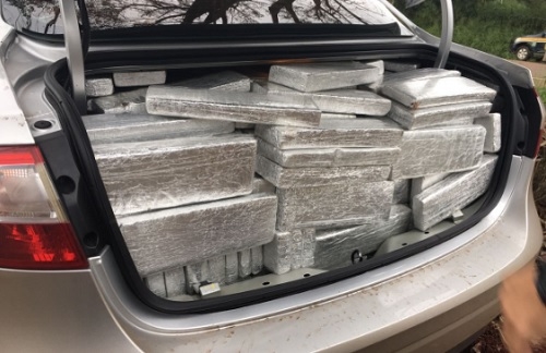 ...maconha! Muita maconha. A Polícia Rodoviária Federal de Campo Mourão apreendeu neste domingo um Renault Fluence que levava no bagageiro 522 tabletes de maconha, num total de 484 kg da droga. O carro, com placa de Maringá, tinha registro de furto. O condutor fugiu quando a PRF mandou parar, mas abandonou o veículo em seguida. Pouco depois foi encontrado e preso.