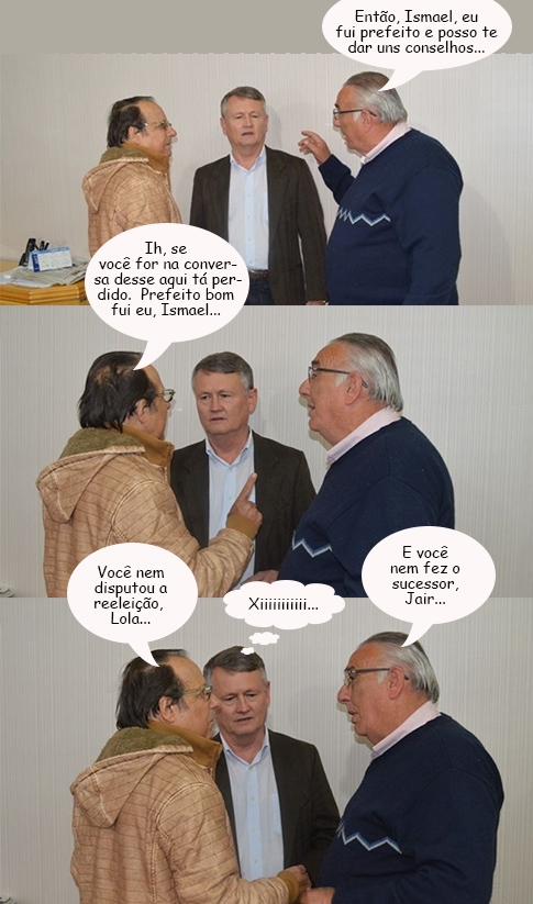 Os cliques são da prefeitura de Janiópolis, onde o prefeito Ismael Dezanoski foi empossado na terça-feira e no dia seguinte recebeu a visita de dois ex-prefeitos - Jair Detofol e Lola Poera. Os dois, aliás, são de grupos políticos adversários e foram desejar boa sorte a Ismael, que assumiu a prefeitura após a renúncia de Heitor de Oliveira Costa.
