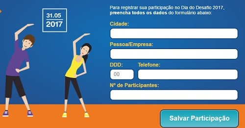...fazer alguma atividade física por pelo menos 15 minutos. É o Dia do Desafio, promovido pelo Sesc. Dezessete cidades da região estão participando. Campo Mourão enfrenta San Pedro Sacatepéquez, da Guatemala. Ganha quem envolver o maior percentual da população na brincadeira. Para ser computada, a participação precisa ser registrada no site www.sescpr.com.br/ddd