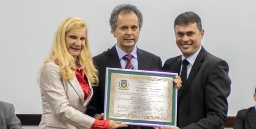O gerente dos Correios de Campo Mourão, José Alves da Cruz, recebeu nesta terça-feira o título de Cidadão Honorário de Campo Mourão. Foi durante sessão solene da Câmara, realizada no Sesc. A entrega da homenagem foi feita pela vereadora Nelita Piacentini, autora do projeto, e pelo vice-prefeito Beto Voidelo. Cruz nasceu em Janióopolis, entrou nos Correios em 1983 e desde 1994 é gerente em Campo Mourão.