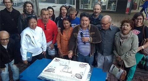 Teve bolo servido no calçadão, no final da tarde desta quarta-feira, para marcar o aniversário de 70 anos da APP/Sindicato. Um grupo de cerca de 20 professores e funcionários da educação esteve presente. Não faltou o “parabéns pra você” e, para não perder o costume o coro de “fora, Beto Richa!”. O bolo foi cortado às 18h e distribuído a populares que passavam pelo local na saída do trabalho.