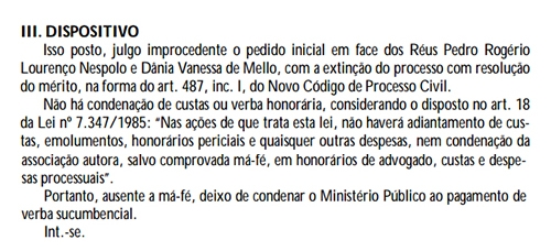 A ação também era conta a então diretora jurídica da Câmara, Dânia Vanessa de Mello, que também foi inocentada.