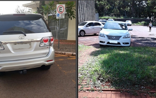 1) “Rua Santa Cruz, em frente aos Correios. Utilizo as vagas de deficiente e idoso e sempre tem alguém sem a carteirinha ou com carteirinha de idoso na vaga de deficiente”.