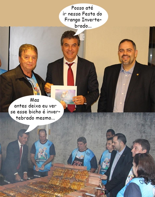 O prefeito de Quarto Centenário, Reinaldo Krachinski, foi a Curitiba levar convite para o governador Beto Richa participar da Festa do Frango Invertebrado, no próximo dia 30. Mas não foi só o convite, não. Krachinski mandou até preparar o franguinho sem ossos para Richa experimentar. O governador gostou e até cantou no evento. Disse que pode ser que vá à festa, sim. Em tempo: 80% dos convites já foram vendidos.
