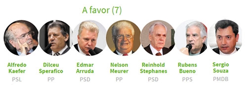 Sete deputados são favoráveis, sete não se manifestaram e dois estão indecisos.