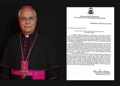“Como bispo da Diocese de Campo Mourão, falando, portanto, em nome do povo católico radicado nesta terra abençoada da Comcam, expresso minha preocupação para com os rumos que a política de governo quer dar ao futuro do Brasil”.