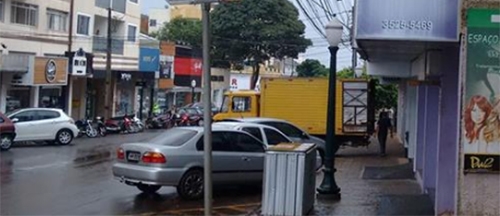 “O caminhão está no tamanho compatível e faz descarga no horário permitido em Campo Mourão. Só não pode estacionar desse jeito, né? Fico atravessado sobre a calçada, dificultando a passagem de pedestres, ainda mais que o espaço que sobrou era usada para o trabalho de quem fazia o descarregamento”.
