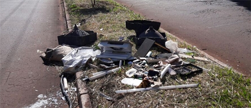 Como não fazer - Infelizmente, no entanto, ainda tem quem acha mais fácil usar o canteiro central, como esse aí, na av. Goioerê, deixado no local no dia em que acontecia a coleta.