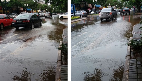 “Nesta quinta-feira a água da chuva transformou em rio a av. Irmãos Pereira, na esquina com a rua Harrison José Borges. O bueiro está entupido há muitos anos”. Fraterno