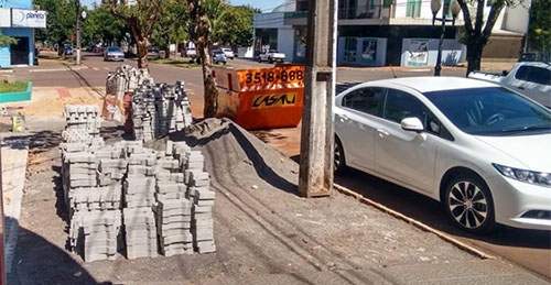 Na av. Capitão Índio Bandeira, perto da rua Edmudo Mercer, a calçada nova está sendo feita, o que é bom. O problema é que o material todo foi deixado sem ficar um metro sequer para a passagem de pedestres. Com a caçamba de entulho no local, só resta o meio da rua mesmo.